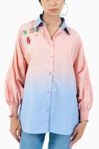 Featuring Candy Lily Shirt by URAIB from The Forest Affair Collection. Tailored from cotton poplin, this embellished shirt showcases a unique blend of Candy and Lilac and ribbed cuffs , delivering a distinctive and sophisticated style statement.