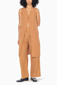 Featuring Canyon Echo Tunic by Contemponari. A sleek sleeveless top with a flattering V-neckline, boasting a stylish mid-length cut and adorned with a classy front button opening for an effortlessly chic look.