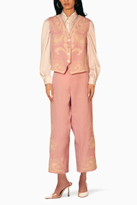 Featuring Caprese Cutwork Waist Coat Set by Love Cabo Collection. Meticulously crafted in linen, this cutwork embroidered waistcoat makes this set unique.
