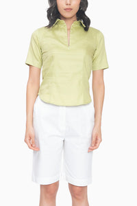 Composition: Cotton Satin Color: Green Fit: Slim Fit Model Height- 5'6 Size Worn by Model- S Components: 1 Product Code: SVECONTEA-388SCHK