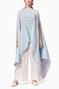 Introducing the Capri Roses Cape, a symphony of style in Poly Satin. Its free-size pleated design exudes effortless elegance. Adorned with a captivating Blue Gingham print, it's a timeless statement piece. Versatile and chic, it drapes with grace, promising a touch of sophistication for every occasion, capturing the essence of seaside romance.