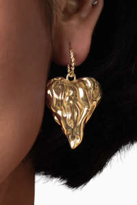 Cardi (Heart) earrings capture the essence of a heart aflame, frozen in a moment of molten beauty. The textured design mimics the dynamic, fluid nature of love, rendering each piece a unique expression of emotion. Wear these earrings as a symbol of the fiery and enduring power of love, making a statement that resonates with both style and sentiment.