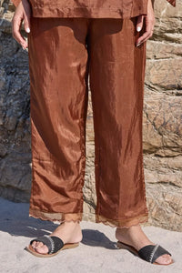 The Carly Brown Trouser is a stylish pull-on design featuring convenient pockets and a delicate scalloped hem. With its comfortable fit and subtle detailing, these trousers offer a chic and practical addition to any wardrobe.