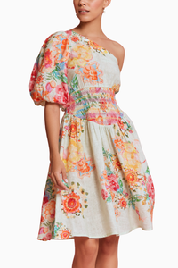 Made in our staple sustainable fabric- 'Linen Lyocell' the Sierra Mini is seen in our Carnation print inspired by the disney princesses. One shoulder, bell sleeves , elasticated waistline; the fit and flare dress is giving coquette!