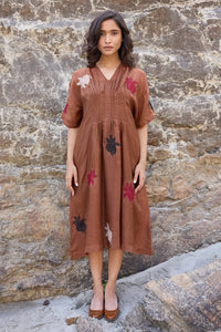 The Carol Brown Dress is a graceful waist pintuck design featuring all-over hand-embroidered floral motifs. With its flattering silhouette and intricate detailing, this dress exudes timeless elegance, making it a perfect choice for both casual and special occasions.