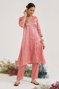 Carrot Floral Zari Tissue Angrakha with Narrow Pants is an exceptional choice for anyone seeking elegance and tradition combined with modern sophistication. Its intricate craftsmanship and luxurious design make it a must-have for festive wardrobes.