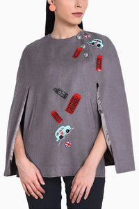 Cashmere Slits Open Grey Cape