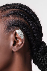 Inspired by the gnarly forms and texture found on the knotty pine trees, these maximal link earrings are a bold and sensational addition to any outfit. The imperfect yet ornamented texture is enclosed in link forms inspired by the rustic knots and holes found on the bark of aged trees.