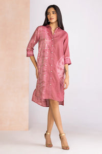 Celestides Shirt Dress is crafted in a breathable linen blend, designed in a button-down silhouette with a collared neckline, signature tie-dye, and gold foiling. Balancing structure with fluid ease, it offers a comfort fit and refined elegance for daytime, festive lunches, and evening occasions.