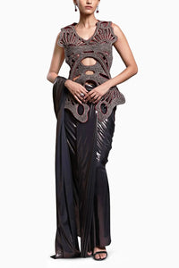 Featuring the CF Maroon Armor Top by Siddartha Tytler from the CALIGULA Collection. This maroon crystal rope skeletal top with a velvet back combines bold, intricate detailing with luxurious texture, creating a striking and edgy statement piece.