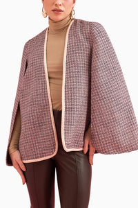 Champaign blue shimmer tweed cape With front armhole cut, Lace detailing in the front, Regular fit with extra ease. Perfect to make you growl and shine in any party