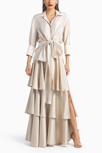 Composition- Silk Color- Champagne Fit- Relax Fit Customization - There will be an additional 10% charge Size Guide- Measurements in the size guide are ready garment measurements Components- 1 Product code - SVE431882210102