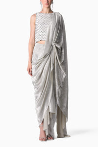The lightest sari you will ever own. The Galaxy Sari has the right amount of sheen and is extremely fuss free. Pair it with our Chandelier Top which is hand embroidered over a span of 8 days.
