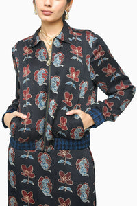 A statement bomber jacket in modal featuring the Blooming Beast print. Designed with a classic collar and a structured yet easy fit, it brings bold print and clean tailoring together — a standout layering piece for day or night.