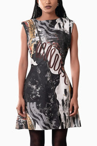 The Chasm Hourglass Dress is a sophisticated, knee-length sleeveless design that combines modern style with timeless elegance. With a bold zip detail at the front, this dress is both edgy and refined. The shoulder pads enhance the structure, while the fitted waist perfectly shapes the body, creating a flattering hourglass silhouette. This dress is the perfect balance of sharp lines and feminine curves, making it ideal for both day and evening wear.