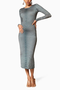 Featuring Checkmate Digital Polka Dress by Siddartha Tytler from Checkmate Collection. Embrace modern style with the digital polka printed spandex fitted dress. Adorning a vibrant polka dot pattern and a form-fitting silhouette, this dress combines playful prints with the comfort of spandex for a chic, contemporary look.
