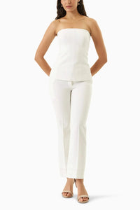 Featuring Chelsea Set by Anahe, this crisp white linen co-ord pairs a strapless corset top with tailored pants. With a fitted silhouette and breathable fabric, it’s the perfect blend of elegance and comfort for chic, warm-weather style.