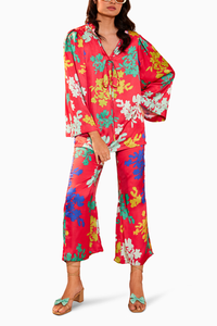 Featuring the Cherry Red Magnolia Co-ord Set from Sttavoss's Everbloom Collection. Made from soft satin adorned with a stunning print, this set exudes elegance and style. With its flattering fit and comfortable feel, it's sure to become your go-to piece this summer, offering both fashion and comfort.