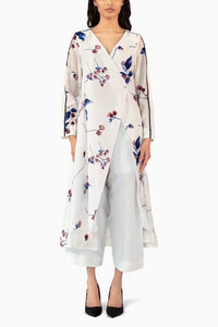 Indulge in luxury with our Cherry Wrap Set. This white kurta is adorned with delicate red cherries, reminiscent of a fine painting. The blue stripe on the sleeve adds a touch of sophistication. Accompanied by white chanderi pants for a complete and elevated look.