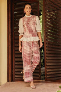 Effortlessly stylish, this chevron crochet co-ord set transitions seamlessly from work meetings to casual lunches with friends. Its classic design and breathable fabric create a chic yet comfortable look, perfect for the modern woman on the go.