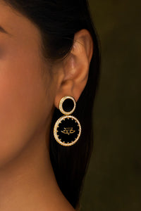 Material-22 karat gold-plated, atleast 4-6x thicker than industry standard Recycled brass / hypoallergenic / 100% skin-safe (tested) Color- Gold and Black Dimensions- 4.2 x 2.5 cm Product Code- SVEAULE3071