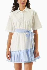 Chill Stripe Dress offers a fresh take on a classic shirt dress with a playful stripe frill detail at the bottom. Made from soft cotton in blue and white stripes, this regular fit dress is perfect for everyday comfort and casual sophistication.