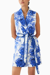 The Chintz Blazer & Shorts crafted from our 100% cotton fabrication, trans-seasonal, is a statement piece. The sleeveless blazer, made in our chintz print, is lined. With broad lapel, the piece has a relaxed fit and is part of a two piece set. Featuring a summery look, it is paired with our chintz lined shorts with pockets. It also has a belt with fringes. Wear it with heels for an elegant look.ÂÂÂ