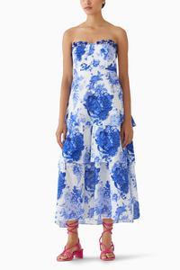 The Chintz Tiered Dress crafted from our 100% cotton fabrication, trans-seasonal, is a statement piece. The dress, made in our chintz print, is lined. With an off shoulder style, the piece is hand embroidered with boho sequin and layered. Featuring a summery look, it has gathers at the back with a fitted look. Wear it with heels for an elegant look.Â