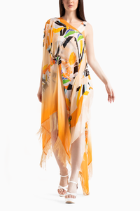 The Pink Abstract Muse one-shoulder bodysuit is a contemporary masterpiece that marries avant-garde design with a touch of elegance. The soft pink hue is delicate and captivating, creating a beautiful backdrop for the abstract muse pattern. The side cut adds a touch of boldness, revealing just the right amount of skin, while the chiffon cape detailed with ruffles at the sleeve introduces a whimsical and dynamic element. This bodysuit is the epitome of modern fashion's creative brilliance, offering a unique blend of sensuality and style that's perfect for making a striking and memorable impression at any special event.