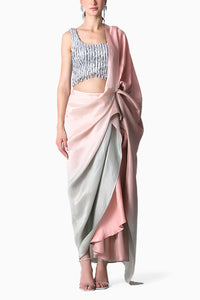 Fabric- Silk Color- Silver and Ombre Stone to Salmon Pink Components- 2 Product Code- SVE431882220209&2221605