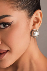 Refined and radiant, the Chrome Senora Studs feature luminous white manufactured pearls set in hypoallergenic brass with a sleek chrome finish. With sterling silver posts for added comfort, these studs blend timeless elegance with modern design.