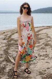 The Cinnamon Crochet Bloom Maxi Dress is a stunning maxi dress that features a rich cinnamon colour and delicate crochet floral details. The flowing silhouette creates an effortlessly chic look, while the crochet bloom design adds an artistic and romantic element.