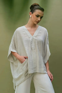 Featuring the Cinta Natural Top by Anaash's AUR collection. Woven in textured melange fabric, this relaxed fit top in a soft natural hue channels effortless earthiness. A versatile staple that pairs seamlessly with everything, perfect for understated everyday elegance.