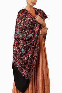 Elevate your style with the Clara Pashmina Shawl, a masterpiece of handcrafted luxury. Pure pashmina wool is handwoven and adorned with intricate Aabi kari and Tila embroidery, techniques passed down for generations. This heirloom-quality shawl is decadently soft, offering warmth without weight. Drape it effortlessly for timeless elegance.
