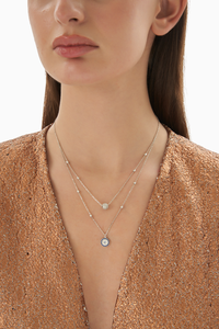 Featuring the Classic Multi Beads And Evil Eye Silver Chain Necklace by KAI Jewels. A stunning addition to your evil eye collection, pairing shimmering crystals with the iconic symbol in layered artistic beauty. Crafted with pure sterling silver, adorned with quality zircon diamonds, and finished with a quality silver chain in rich silver.