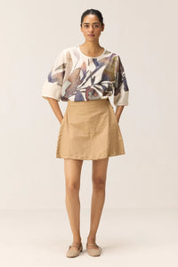 Featuring a versatile beige skort crafted in sturdy cotton oxford, designed to offer the appearance of a skirt with the ease of shorts. Featuring a clean side silhouette with a concealed zipper and single-button closure, it blends structure with comfort for everyday wear.