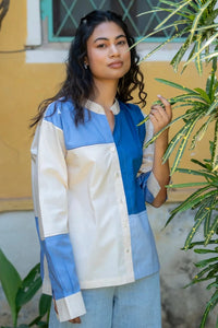 Featuring Cloud Blue Olivia Shirt from URAIB's collection Summer Lovin'. The product is made from 100% cotton poplin highlighing the multi tone straight fit shirt along with stitch detailes front & back.