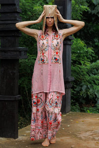 The Cloud Pink Whisper Crochet Co-ord Set is a charming and delicate ensemble in a soft cloud pink color. The set features intricate crochet detailing that adds texture and femininity, combined with a breezy, relaxed fit. The pairing of a crochet top and skirt creates a timeless and bohemian vibe, making it perfect for a casual day out or a stylish evening event.