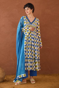Fabric- Cotton Mulmul Color- Multicolour Details- Block Printed Checks Kurta Length- 47", Bottom Length- 38" Components- 3 Product Code- SVETAROSP1021