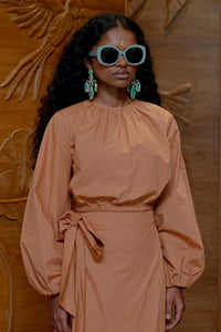 Made from breathable BCI cotton poplin, the Clove Top features a gathered neckline with full-length sleeves and a relaxed silhouette. The subtle volume and flow make it perfect for day-to-night wear. Style it with the Clove Wrap Skirt for a polished, coordinated look.