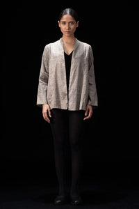 The Club Silver Jacket is a striking piece crafted from luxurious Tissue fabric, known for its delicate and ethereal quality. Tissue fabric has a lightweight, sheer texture that gives the jacket a graceful and fluid drape, creating an elegant and sophisticated look. The jacket's silver hue adds a touch of modern glamour, making it an ideal choice for evening wear, formal events, or special occasions.