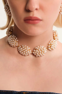Featuring Cluster Choker by Anaash's Cluster collection, this elegant necklace is crafted from hypoallergenic brass with 22k gold plating. Designed in a white finish, it features delicate pearl accents and an adjustable length with a secure lobster closure.