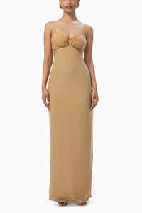 Meticulously crafted in a soft stretch mesh fabric, the Coastline dress is your effortless statement piece for balmy weather escapes. Its semi-sheer finish drapes fluidly over the body, with gold accented front detailing and flattering side cut-outs, highlighting the form with grace. The dress also features adjustable lace-up back for a custom fit and detachable straps, allowing you to wear it in a classic or strapless style.