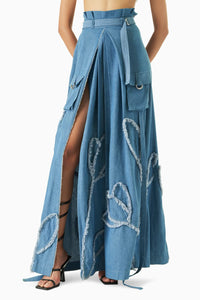 Brighten your wardrobe with our Cobalt Denim Floral Appliqué Skirt. This eye-catching piece features intricate floral appliqués that add a playful touch to the classic denim silhouette. Designed for comfort and style, it effortlessly transitions from day to night. Pair it with a simple top for a chic, casual look or dress it up for special occasions. Stand out with this unique and versatile skirt!