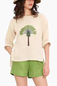 Hand embroidered soft crush cotton summer top. Wear it with our shorts or cotton pants from the collection to complete the look.