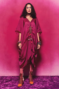 Elevate your style with our silk V-neck solid kaftan, paired with chic pants. Featuring a pull string with playful tassels, this effortlessly elegant ensemble is perfect for both casual and dressy occasions, combining comfort and sophistication seamlessly.
