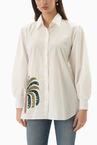 Featuring a cotton shirt with palm tree embroidery, designed in a flattering straight fit. Crafted from cotton fabric, this shirt is a chic addition to your collection.