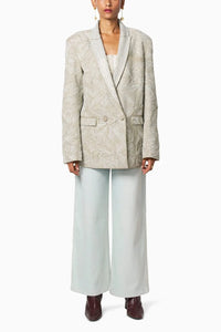 Featuring Coco White Blouse With Aria Jeans and Dune Jacket by 431-88's 9-6 collection, this co-ord set combines a hand-embroidered cropped blouse, relaxed-fit denim, and a tailored embroidered jacket for an elevated, versatile day-to-night ensemble.