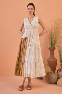 Fabric- Cotton Mulmul, Lining- Cotton Mulmul Color- White & Tan Details- Confetti Dot Prints Dress Length- 50" Components- 1 Product Code- SVETAROSP721