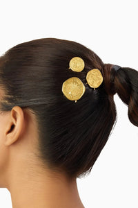 Embrace the art of adornment with our Coin Hair Pin Set. These exquisite hair accessories pay homage to Indian heritage with a stunning peacock design symbolizing grace and elegance, and a lotus design representing strength and resilience. Elevate any hairstyle and make a statement with this luxurious set.